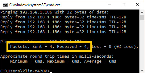 Now verify that the Chrome PC has network connectivity to the P1TS Server PC by running Windows' ping.exe command line program on your Chrome PC: