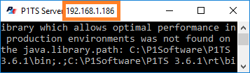 1. The P1TS Server's IP address normally appears in its title bar (192.168.1.186 in this example)